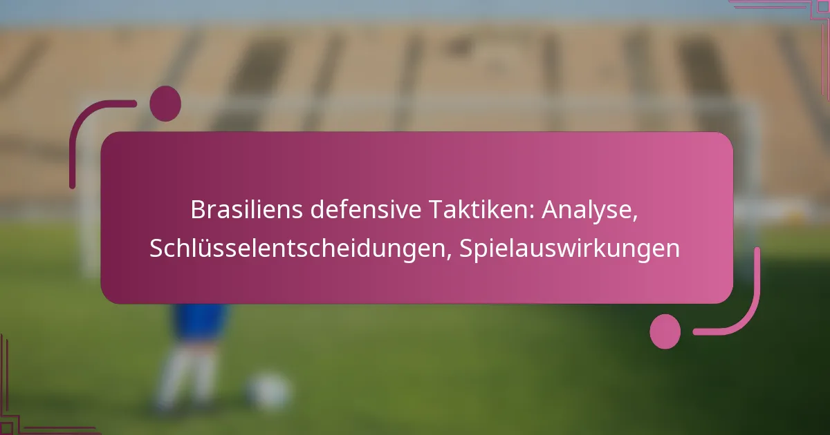 Die defensiven Taktiken Brasiliens im Fußball zeichnen sich durch strukturierte Formationen und strategische Spielerrollen aus, die eine widerstandsfähige und anpassungsfähige Verteidigung ermöglichen. Wichtige Entscheidungen der Trainer, einschließlich taktischer Anpassungen und Auswechslungen, spielen eine entscheidende Rolle bei der Gestaltung der Teamleistung gegen unterschiedliche Gegner. Die Effektivität dieser Verteidigung hängt von starker Kommunikation, individuellen Fähigkeiten und der Fähigkeit ab, auf unterschiedliche Spielbedingungen zu reagieren.